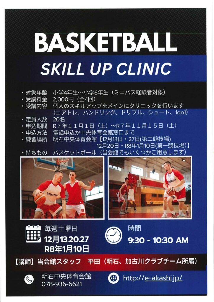 BASKETBALL SKILL UP CLINIC(バスケットボール教室)を開講します!