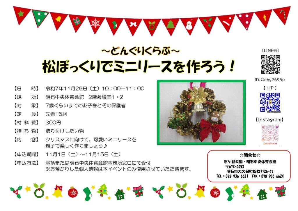 令和7年11月29日(土)どんぐりくらぶ「松ぼっくりでミニリースを作ろう!」