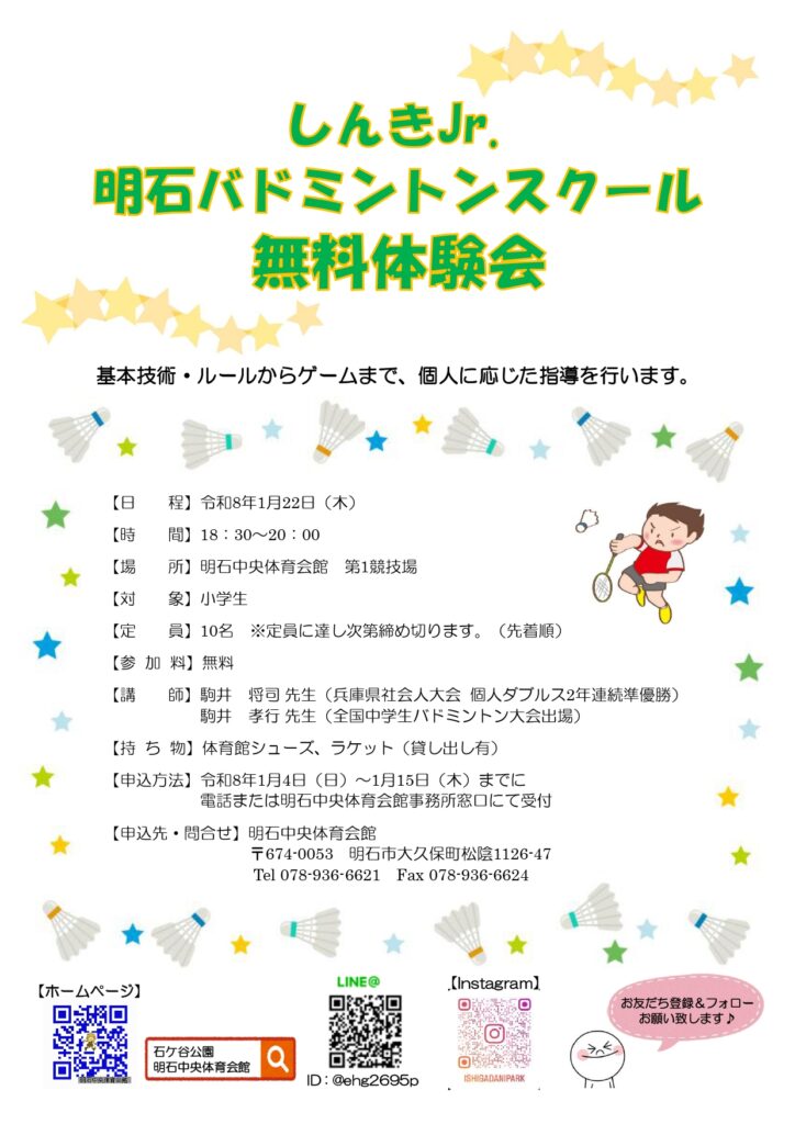しんきJr.明石バドミントンスクール無料体験会を開催!