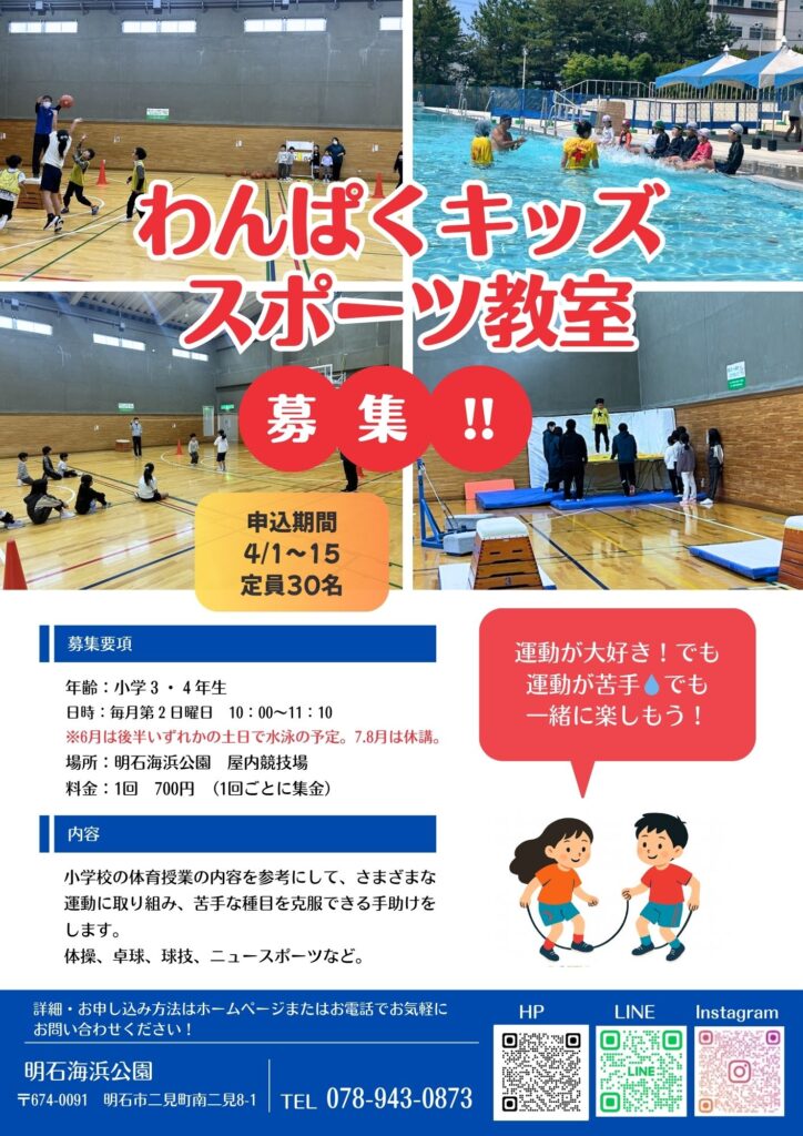■申込方法:わんぱくキッズスポーツ教室:明石海浜公園まで往復はがき送付