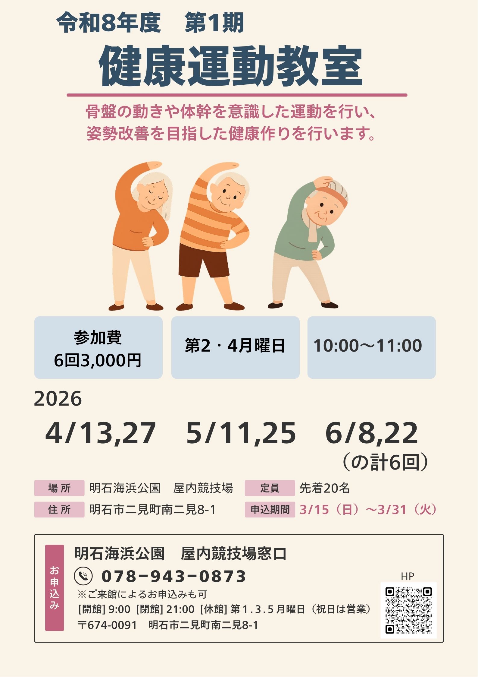 ■申込方法:明石海浜公園屋内競技場窓口にて直接または電話