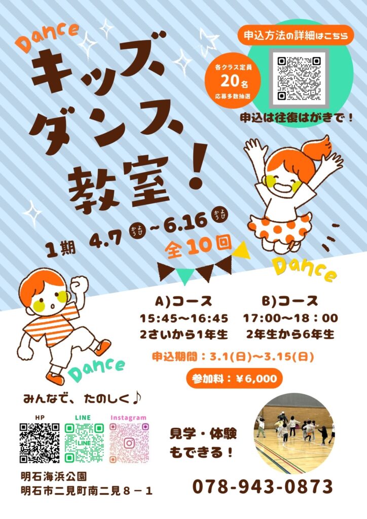 4月スタートの第1期キッズキッズダンス教室・サッカー教室・ヨガ教室