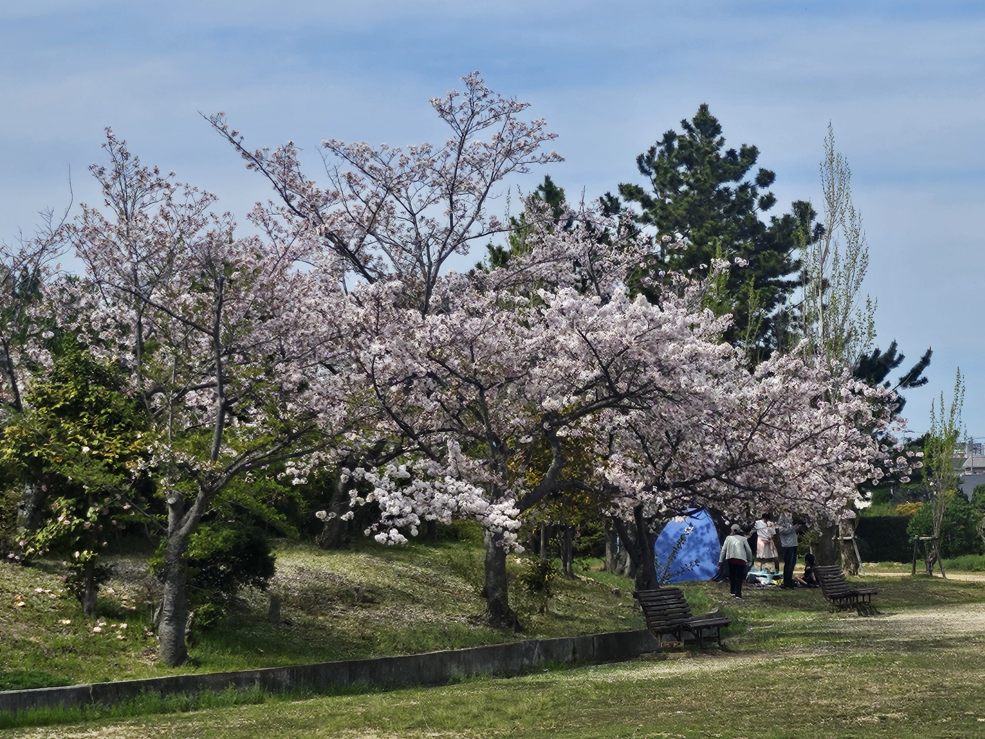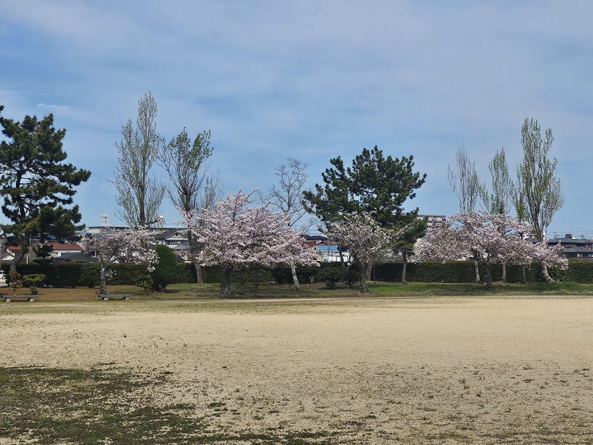 葉桜が目立つようになりましたが、自由広場の一部ではきれいに咲いているところがあります。