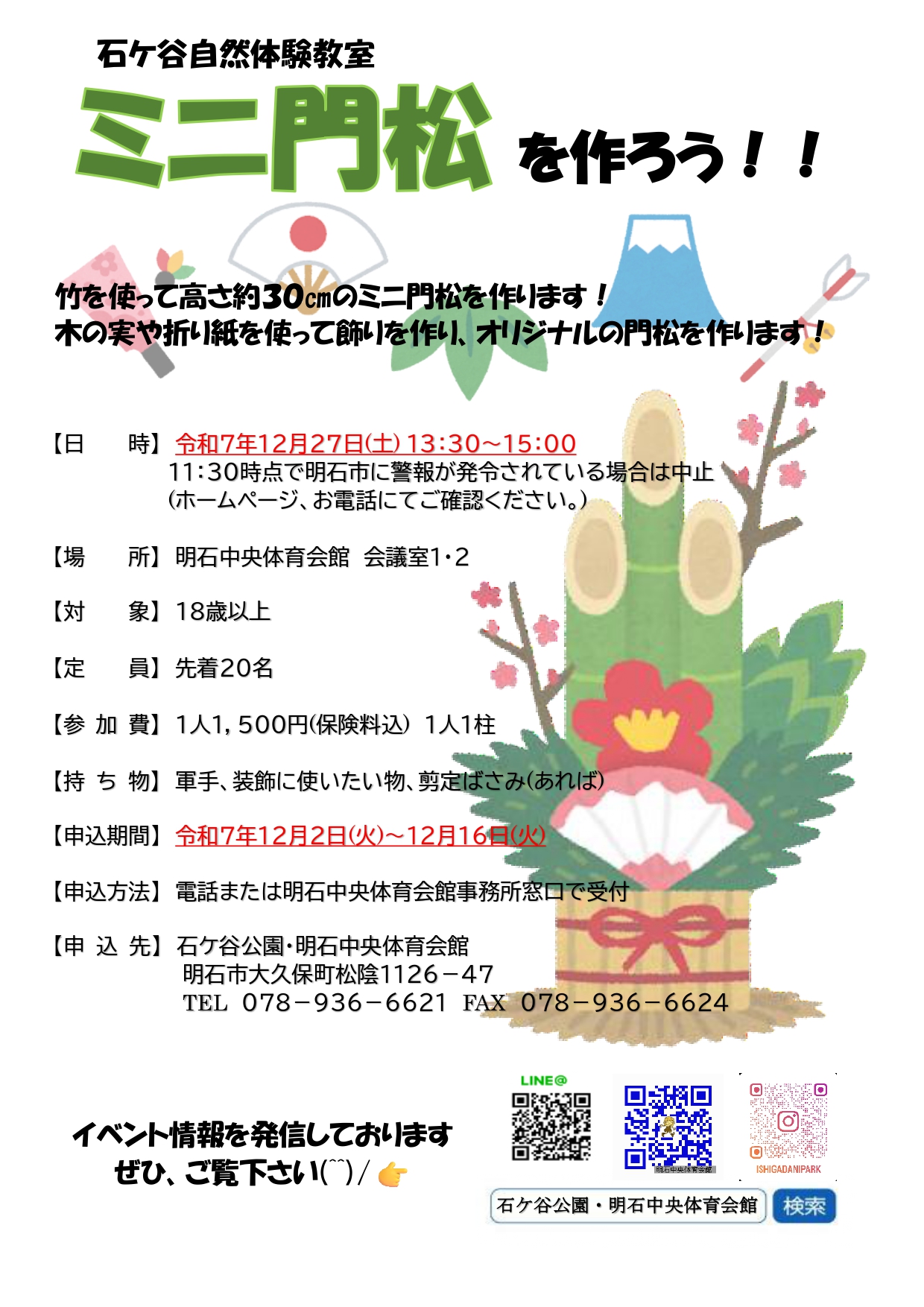 【受付終了しました】令和7年12月27日(土)ミニ門松を作ろう!!