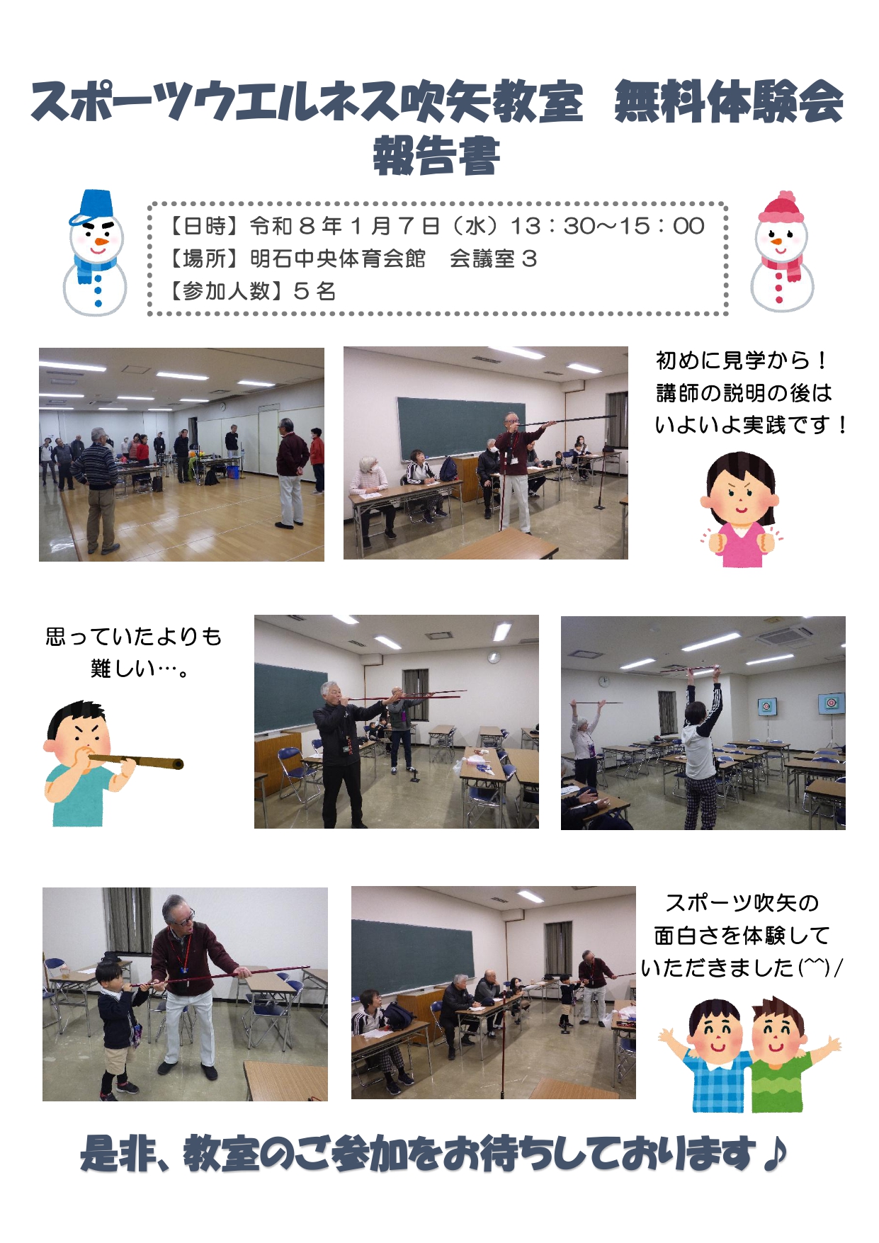 令和8年1月7日(水)スポーツウエルネス吹矢教室無料体験会
