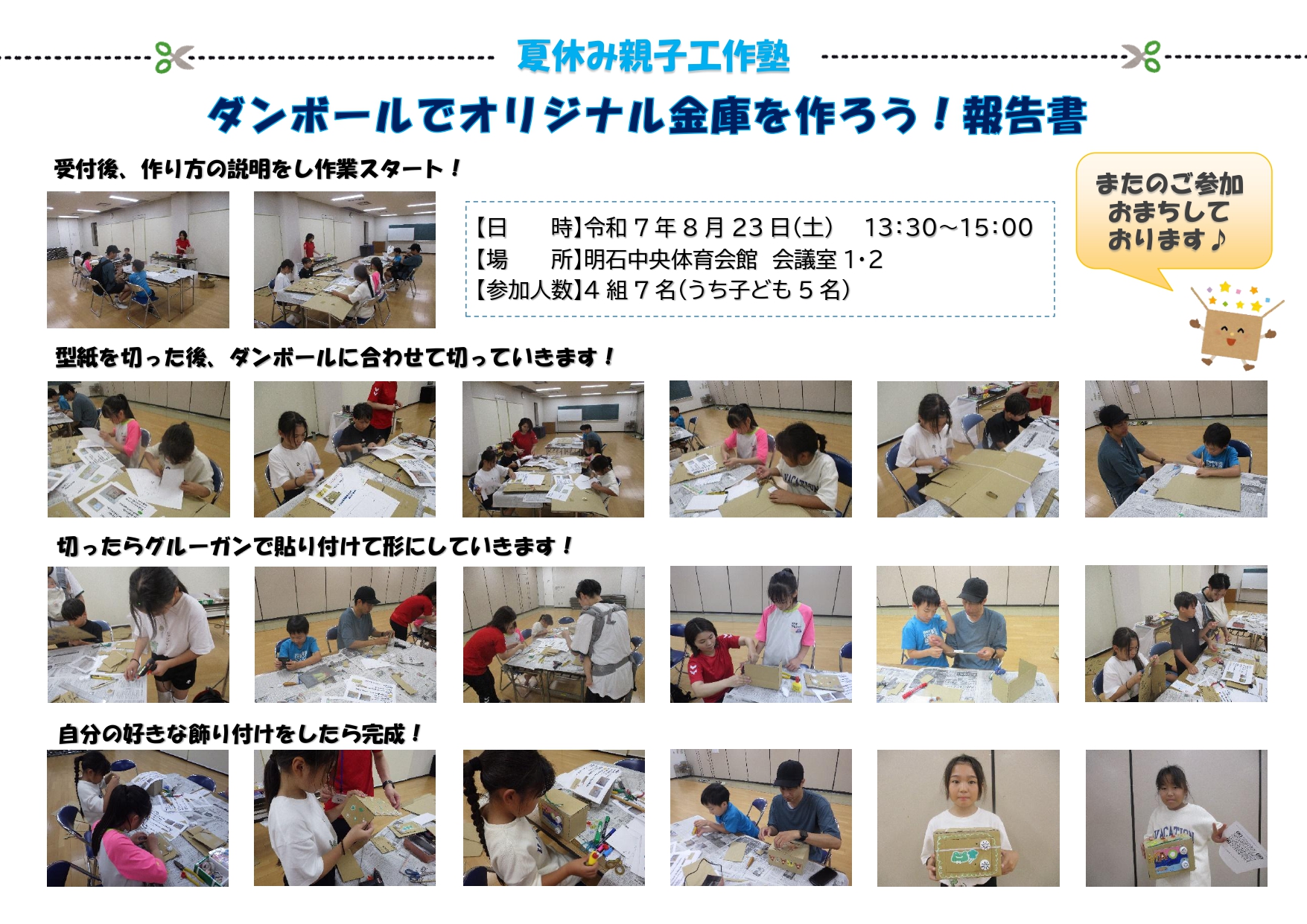 令和7年8月23日(土)夏休み親子工作塾「オリジナル金庫を作ろう!」